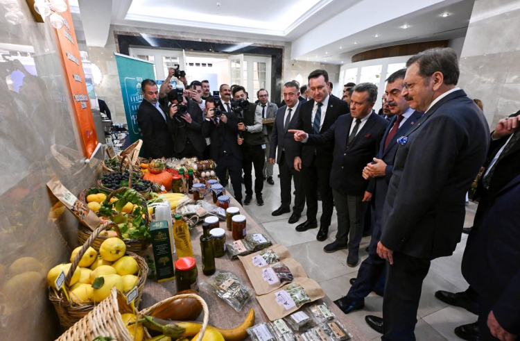 Protokol öncesinde, TOBB Başkanı M. Rifat Hisarcıklıoğlu ile Milli Eğitim Bakanı Yusuf Tekin, okulumuzun ürettiği tarımsal ürünlerin sergilendiği stantı ziyaret etti.
