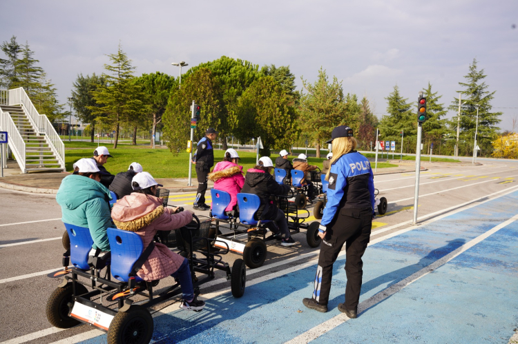 Eğitim programının pratik bölümünde ise merkez içindeki özel uygulama alanları kullanılarak katılımcılara gerçek bir trafik ortamı deneyimi yaşatıldı. Böylece teorik bilgiler, güvenli ve kontrollü bir şekilde uygulamalı olarak pekiştirildi.