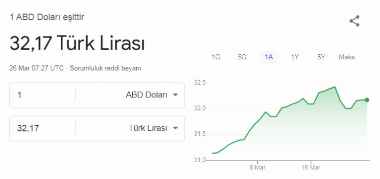 26 Mart Salı gününe 32,17 TL'den başlayan dolar Euro ise 34,90 TL'den işlem görüyor.