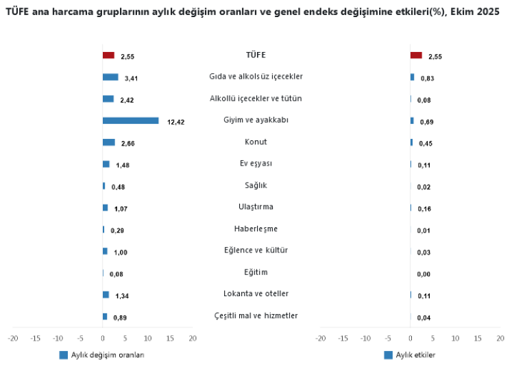ANKARA (İGFA) - Türkiye İstatistik Kurumu (TÜİK), 2025 Ekim ayı Tüketici Fiyat Endeksi (TÜFE) verilerini açıkladı.