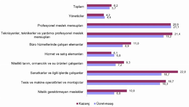 Nitelikli tarım, ormancılık ve su ürünleri çalışanları en düşük kazancı elde etti.