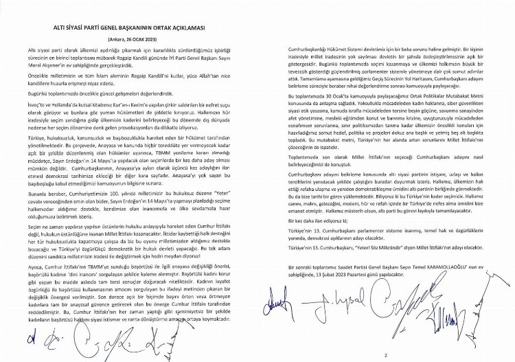Halka bu konuda "müsterih olma" çağrısı yapan liderler, "altı parti bu görevi layıkıyla tamamlayacaktır" ifadelerini kullandı.