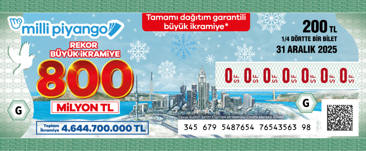 Milli Piyango 2025 yılbaşı özel çekilişinde dağıtılacak toplam ikramiye tutarı ise 4 milyar 644 milyon 700 bin TL.