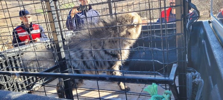 Vatandaşların ihbarıyla bölgeye giden şube ekipleri, çizgili sırtlanı bulunduğu yerden alarak kafese koydu.