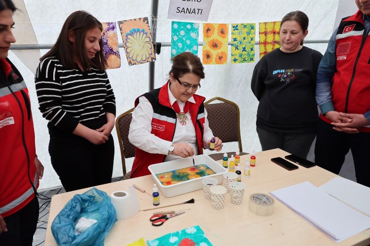İş atölyelerine çarşaf, yastık kılıfı, tişört gibi acil ihtiyaçların üretilmesi için dikiş makinesi, halı, kilim tezgâhları yerleştirildi. Örgü, takı tasarımı, ahşap boyama ve ebru alanları oluşturuldu. Bu atölyelerde usta öğreticiler eşliğinde dikiş nakış öğrenen kadınlar, diğer depremzedelerin ihtiyaçlarını da karşılayarak onlara destek oluyor. İş atölyelerindeki eğitimlere katılan kadınlar hem becerilerini geliştiriyor hem de depremin olumsuz etkilerinden kurtuluyor. Bu zamana kadar yaklaşık 2.500 depremzede kadın iş atölyelerine katılarak diğer depremzedeler yararına da katkı sağladı.