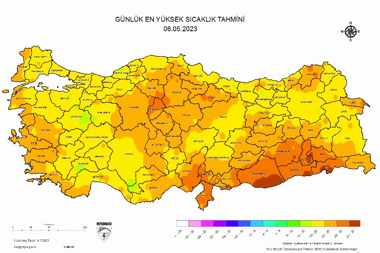 RÜZGAR: Yurdun kuzey ve batı kesimlerinde kuzeyli, diğer yerlerde güney yönlerden hafif, ara sıra orta kuvvette, İç Anadolu' nun doğusunda güneyli, Marmara'nın güneyinde Kuzeyli yönlerden kuvvetli ve kısa süreli fırtına (40-70 km/saat) şeklinde eseceği tahmin ediliyor.