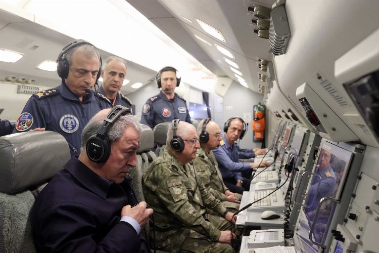 Diyarbakır 8'inci Ana Jet Üs Komutanlığında inceleme ve denetlemelerde bulunan Bakan Akar ve beraberindeki TSK Komuta Kademesi, kentin caddelerinde vatandaşla buluşmanın ardından "Doğu” isimli havadan ihbar kontrol uçağının görev uçuşuna katılarak kara, deniz ve hava unsurlarının faaliyetlerine ilişkin havadan inceleme ve denetlemelerde bulundu.