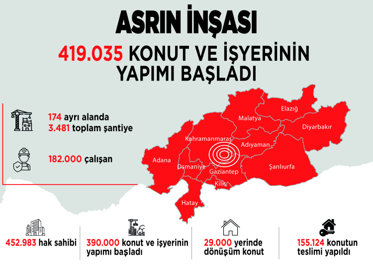 ANKARA (İGFA) - Çevre, Şehircilik ve İklim Değişikliği Bakanı Murat Kurum, TBMM Genel Kurulu’nda yaptığı konuşmada, “Şu an itibarıyla hak sahibi vatandaşlarımız için inşa edilmesi gereken konutların yüzde 93’ünün inşası başlatılmıştır. Bu yıl sonu itibarıyla, yani 20 gün sonra da konutların yüzde 45’i teslim edilmiş olacaktır. Siz (muhalefet) isteseniz de istemeseniz de 2025 yılı sonu itibarıyla 11 ilde evine girmeyen tek bir depremzede kardeşimiz kalmayacak” dedi.