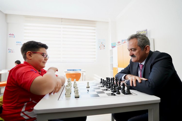 Bursa Sadettin Türkün Ortaokulu 6. sınıf öğrencisi olan Erdoğmuş ile satranç oynayan Özer, BİLSEM'in öğretmenler odasını da ziyaret ederek eğitimcilerle sohbet etti.