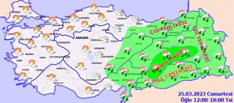 Meteoroloji tahminlerine göre, Batı bölgelerinde güneşli hava ile birlikte sıcaklık 20 derecenin üzerine çıkarken, Doğu bölgelerinde kuvvetli yağış, çığ ve toz taşınımı uyarısı yapıldı.