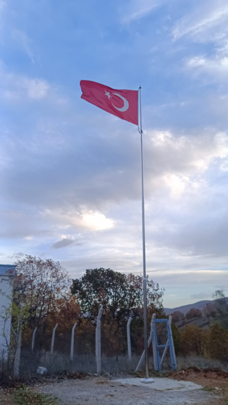 Bayrak direğinin montajı köylü vatandaşların el birliğiyle tamamlanırken, bu birliktelik köyde adeta Cumhuriyet coşkusunun bir simgesine dönüştü.