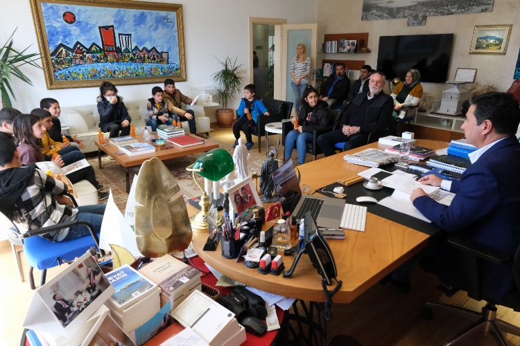 MUĞLA (İGFA) - Kent Konseyi Çocuk Meclisi üyesi Bodrumlu çocuklar, Bodrum Belediye Başkanı Ahmet Aras’ı makamında ziyaret ederek çalışmaları hakkında bilgiler verdi.