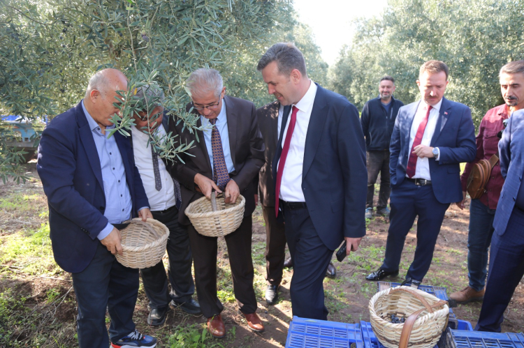 BURSA (İGFA) - Bursa'da Gemlik İlçe Tarım ve Orman Müdürlüğü tarafından yürütülen proje, sürdürülebilir tarımı destekleyerek hem iç piyasaya hem de ihracata yönelik daha kaliteli ve kalıntısız zeytin üretimini hedefliyor. Bursa Vali Yardımcısı Hulusi Doğan, Gemlik Belediye Başkanı Şükrü Deviren, Bursa İl Tarım ve Orman Müdürü İbrahim Acar ve çok sayıda üreticinin katıldığı törende, üreticilere zeytin hasadında kullanılacak selesi ve yaygılar teslim edildi.
