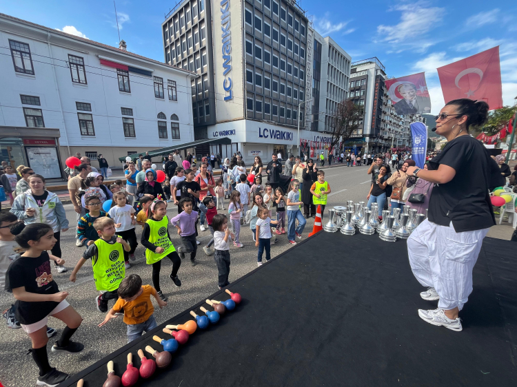 Bursa’da, Avrupa Hareketlilik Haftası etkinlikleri kapsamında araç trafiğine kapatılan Heykel Atatürk Caddesi, çocuk sesleriyle şenlendi.