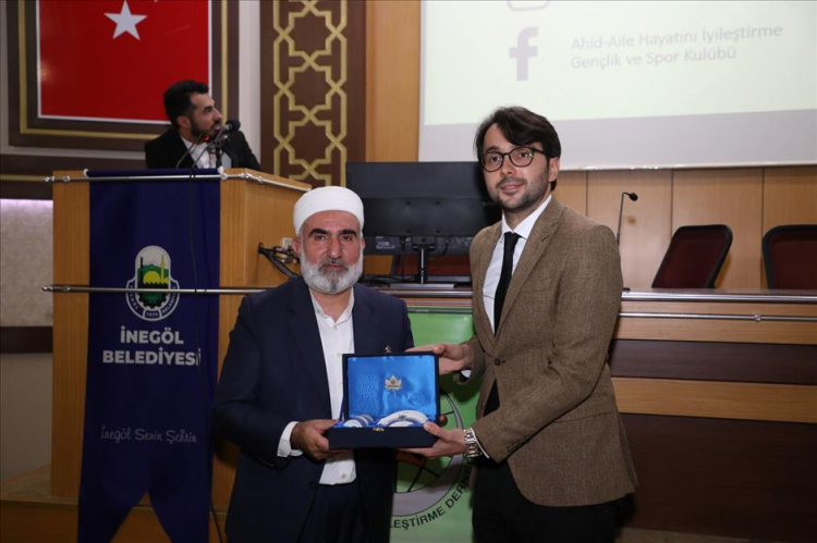 Aile Okulu'nun 3’üncü haftasında, Medrese Alimleri Vakfı (MEDAV) Başkanı Tayyip Elçi, Cuma akşamı Sani Konukoğlu Konferans Salonunda “Kuran Işığında Çocuk Terbiyesi ve Eğitimi” konulu seminerde İnegöllülerle buluştu.