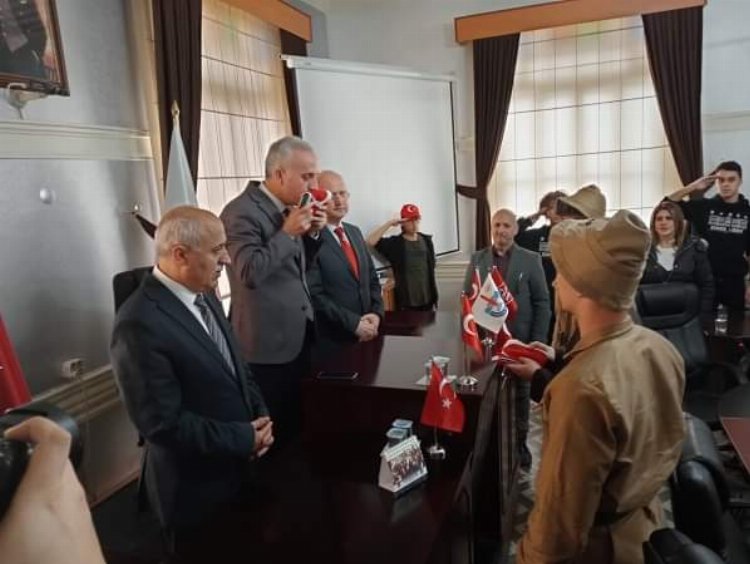 Yenişehir'de duygu dolu anların yaşandığı kortej yürüyüşü sonrası Yenişehir Belediyesi Tarihi Meclis Salonunda ağırlanan öğrenciler; burada ellerindeki Türk Bayrağı ve Kuran-ı Kerim’i öperek, Kaymakam Rahmi Köse ve Belediye Başkanı Davut Aydın'a teslim ettiler.