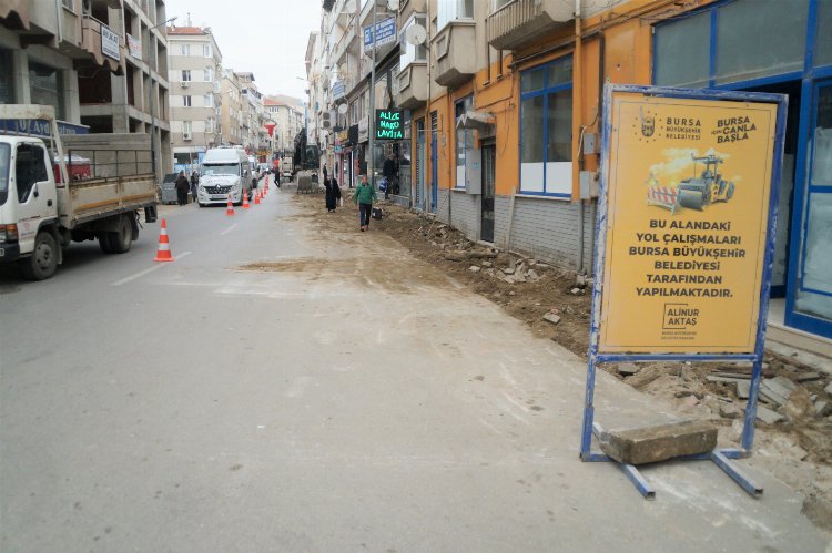 Mudanya'dan Bursa'ya gidiş yönü olan İpar Caddesi’nde başlayan çalışmalar kapsamında belli bir yükseklik standardı bulunmayan yaya kaldırımları komple söküldü.
