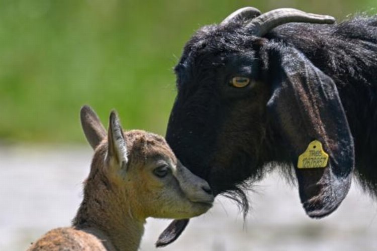 Yavru yaban keçisine Halep keçisi süt annelik yapıyor