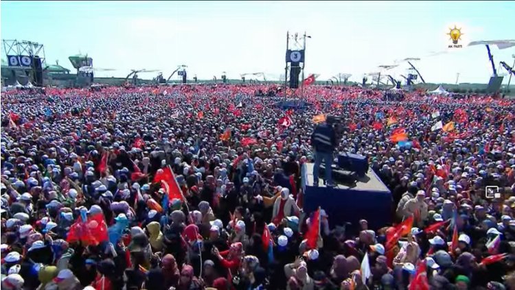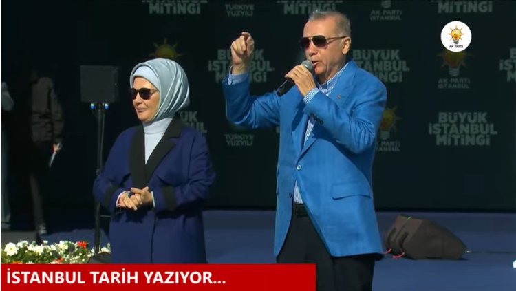 "Bahçelievler-Kirazlı metrosunu, Yenikapı-İncirli-Sefaköy metrosunu, Halkalı- İstanbul Havalimanı raylı sistem bağlantısını bu yıl bitiriyoruz. Altunizade-Bosna Bulvarı raylı sistemini seneye tamamlıyoruz, Gebze-Yavuz Sultan Selim Köprüsü, Havalimanı-Halkalı hızlı tren hattı ihale aşamasına geldi. Ayasofya’yı tekrar camiye dönüştürerek Fatih’in emanetine sahip çıktık. İstanbul’u Türkiye Yüzyılına hazırlıyoruz. Türkiye Yüzyılının yükselişinin lokomotifi de yine İstanbul olacak. Haftaya Pazar günü sandığa gidene kadar çok çalışıyoruz. Şimdi Kandil’dekilerin dini var mı? Kitabı var mı? Bunların ezanı var mı? İşte Bay Bay Kemal onları arkasına almış ne diyor? Haydi, haydi, haydi… Benim milletim de size haftaya Pazar ne diyecek. Ben size güveniyorum, size inanıyorum, size güveniyorum. Haftaya Pazar sandıkları patlatacağınıza inanıyorum. Biz yerliyiz, biz milliyiz ve biz vatanseveriz. Bunlara da vatanımızı böldürmeyeceğiz".