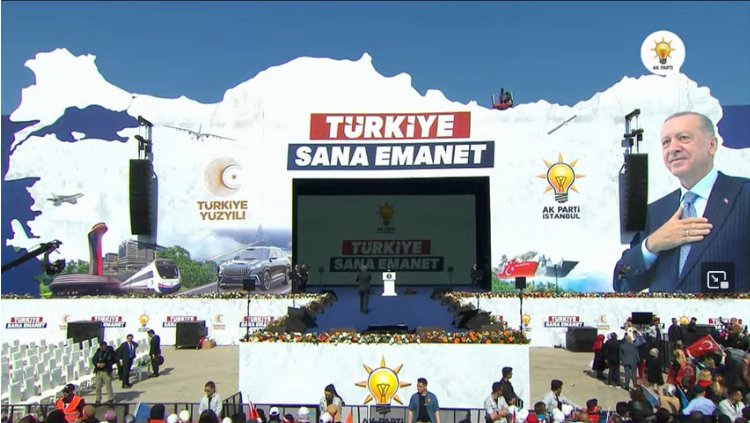 Cumhurbaşkanı ve AK Parti Genel Başkanı Recep Tayyip Erdoğan, Atatürk Havalimanı Millet Bahçesi'nde halka hitap etti. 14 Mayıs'ta gençlerimiz tercihlerini doğrudan yana kullanmalı diyerek "Türkiye Yüzyılını kuracağız" mesajını verdi. Erdoğan, Türkiye Yüzyılının yükselişinin lokomotifinin yine İstanbul olacağını söyledi.