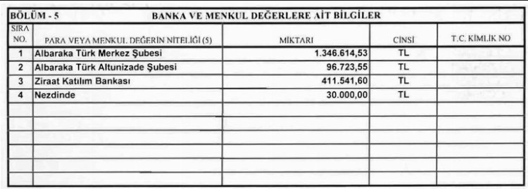 -Albaraka Türk Altunizade şubesi hesabında 96 bin 723 lira 55 kuruş,