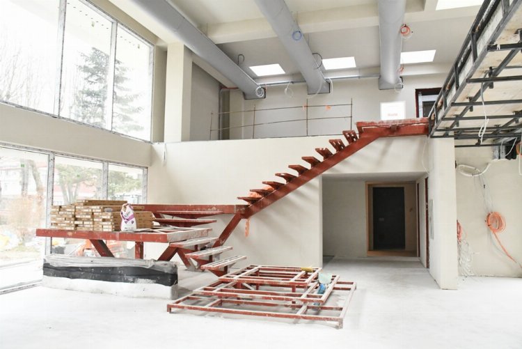 Elif Şevval DEMİR / DÜZCE (İGFA) - Düzce'de Konak Kafkas Park içerisinde iki katlı kütüphanede dış cephe tamamen ortaya çıkarken, iç kısımda ise zemin ısıtma çalışmaları ve şap dökümü tamamlandı.