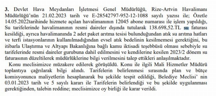 Rize'de Pazar Belediyesi'nin aldığı meclis kararıyla havalimanının su bedeli aylık 200 bin TL'ye yaklaştı. Yaz ayının gelmesiyle birlikte bu fiyatın artması bekleniyor.