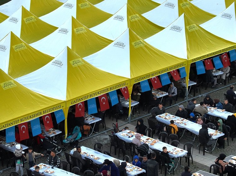Yüzyılın felaketi diye tabir edilen bir doğal afette Gaziantep’te Nurdağı ve İslahiye’nin çok zarar gördüğünü ifade eden Dr. Aksoy, “Bu ilçelerde farklı yerlerde yine iftar yemeklerimizi veriyoruz. Şehir merkezinde de bu yıl 15 Temmuz Demokrasi Meydanı’nda, Bosna Hersek Parkı içinde, Karataş’ta, Düztepe Çamlık Parkı içinde ve Talat Özkarslı Spor Salonu önünde kurulan çadırlarda Gazi şehirliler iftarlarını yapabilecek” diye konuştu.