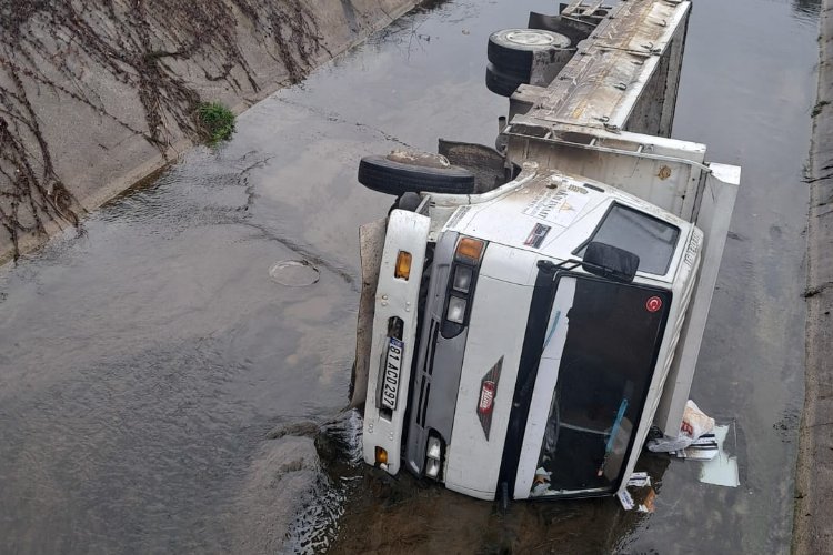 Düzce'de kamyon dereye yuvarlandı