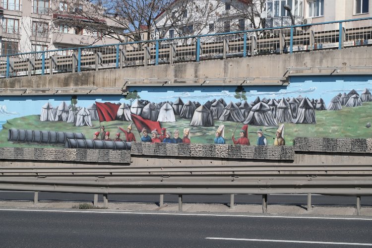 KOCAELİ (İGFA) - Gebze Belediyesi Park ve Bahçeler Müdürlüğü’ne bağlı ekipler, Fatih Sultan Mehmet Han'ın İstanbul’u fethinin yıldönümü anısına Tatlıkuyu Köprüsü'nde, ‘İstanbul'un Fethi Temalı’ grafiti çalışması gerçekleştirdi.