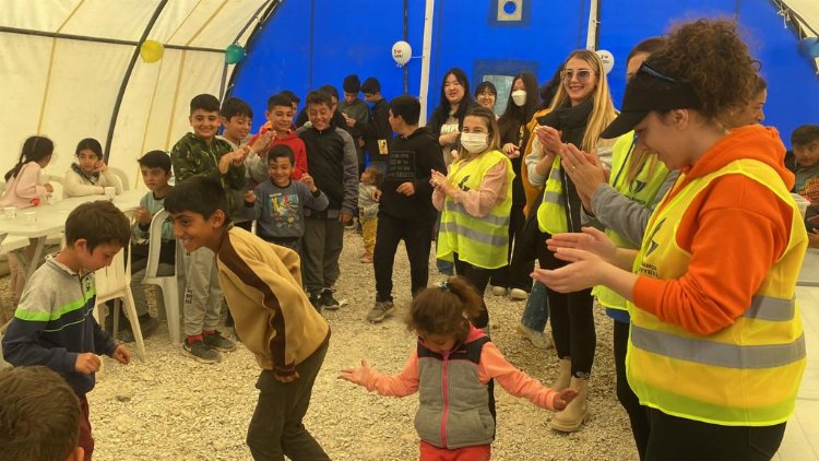 İzmir'de Güzelbahçe Belediyesi’nin Malatya Yeşilyurt ilçesinde kurmuş olduğu konteyner kentte Güney Kore’den gelen gençler depremzede çocuklarla birlikte etkinlik düzenledi.