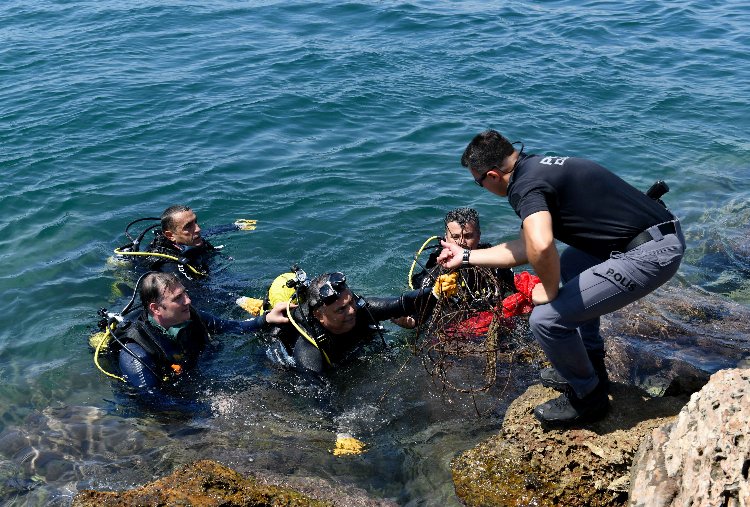 Antalya’da Muratpaşa Belediyesi’nin Akdeniz’de hayalet ağlarla mücadele etmek ve foklarının yaşam alanı falezlerde deniz kirliliğinin önüne geçmek amacıyla kurduğu dalgıç ekibi, ilk görevine çıktı.