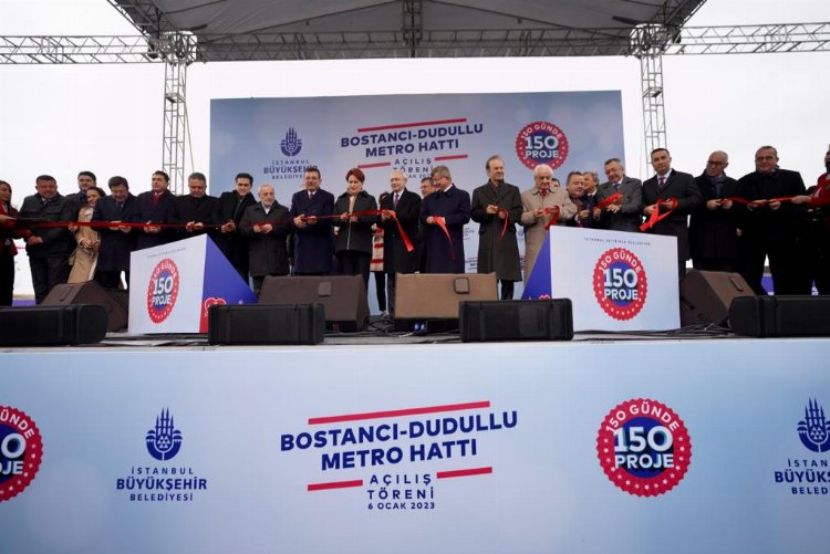 Yapımı tamamlanan hattının açılışında Büyükşehir Belediye Başkanı Başkanı Ekrem İmamoğlu’na, 6’lı masa liderlerinden, CHP Genel Başkanı Kemal Kılıçdaroğlu’nun yanı sıra İYİ Parti Genel Başkanı Meral Akşener ve Gelecek Partisi Genel Başkanı Ahmet Davutoğlu da eşlik etti.