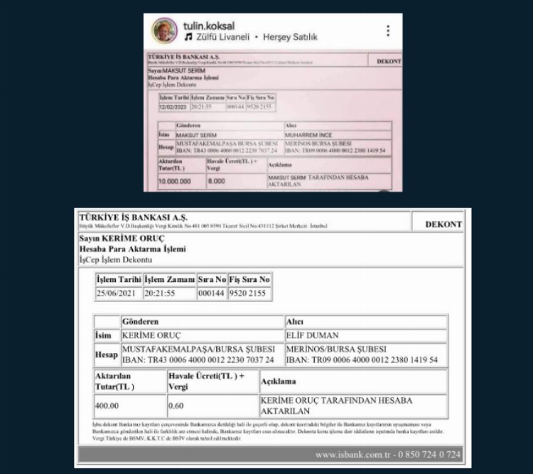 Bültende, Cumhurbaşkanı adayı Memleket Partisi Genel Başkanı Muharrem İnce'nin hesabına AK Partili Maksut Serim tarafından 10 milyon lira bağışlandığı yönündeki iddiaya da açıklık getirildi.