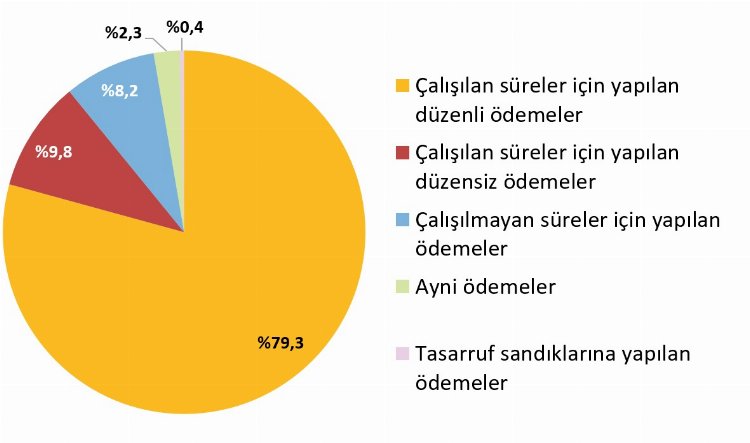 Çalışılan süreler için yapılan düzenli ödemelerin kazanç içindeki payı yüzde 79,3 olurken, sosyal güvenlik ödemeleri içinde zorunlu ödemelerin payı yüzde 85,7 oldu.