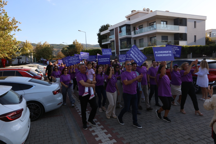 Açılış sonrası Ayşe Mayda Sağlıklı Yaş Alma Merkezinden Güzelbahçe gece pazarına kadar ‘Alzheimer karşı el ele yürüyorum’ yürüyüşü düzenlendi.