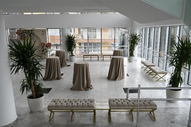 150 metrekarelik nikah salonu, 150 metrekarelik fuaye ve takı alanı, modern süslemesiyle dikkat çeken Yıldız Kenter Nikah salonunda ilk nikahlar kıyıldı.