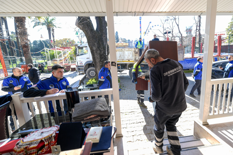 İZMİR (İGFA) - İzmir Büyükşehir Belediye Başkanı Dr. Cemil Tugay’ın talimatıyla, Kültürpark’ın içinde uzun yıllardır işgalci olarak faaliyet gösteren lunaparkın kaldırılması için harekete geçildi. Mevzuat çerçevesinde idari makamlar tarafından tahliye tarihi olarak belirlenen 29 Ocak’ta süreç başlatıldı. Büyükşehir ekipleri tarafından idari binalar boşaltılıyor ve Kültürpark Şube Müdürlüğü’ne alan teslim ediliyor.