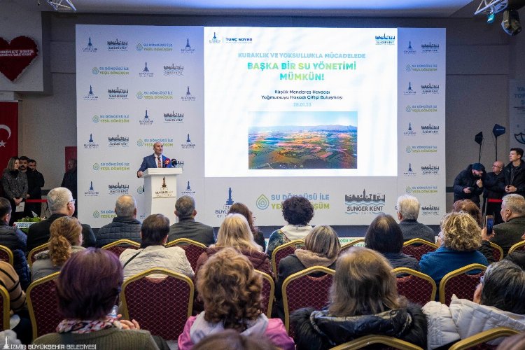İzmir Büyükşehir Belediye Başkanı Tunç Soyer, kuraklık ve yoksullukla mücadele için hayata geçirilen Sünger Kent İzmir projesinin ilk kırsal uygulaması “Küçük Menderes Ovası Yağmur Suyu Hasadı” çalışmasını tanıttı.