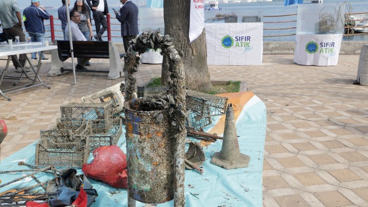 Temizliğin ardından su altından çıkarılan atıklar etkinlik alanında sergilendi. Kıyı temizliği kapsamında dalgıçlar 5 ton hayalet ağı temizledi.