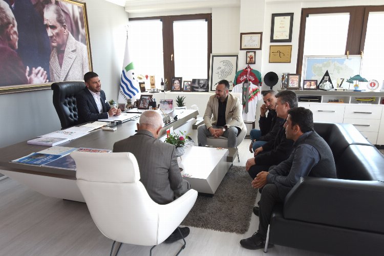İZMİR (İGFA) - İzmir Büyükşehir Belediyesi Ulaşım Dairesi Başkanlığı ile sözleşme imzalayan S.S. 49 No’lu Yenifoça Birlik Yolcu Otobüsleri Motorlu Taşıyıcılar Kooperatifi Başkanı Hüseyin Akgün, kooperatif yöneticileri ve Foça Esnaf ve Sanatkarlar Odası Başkanı Sedat Özdemir, Foça Belediye Başkanı Fatih Gürbüz’ü ziyaret ederek konu hakkında son detayları görüştü.