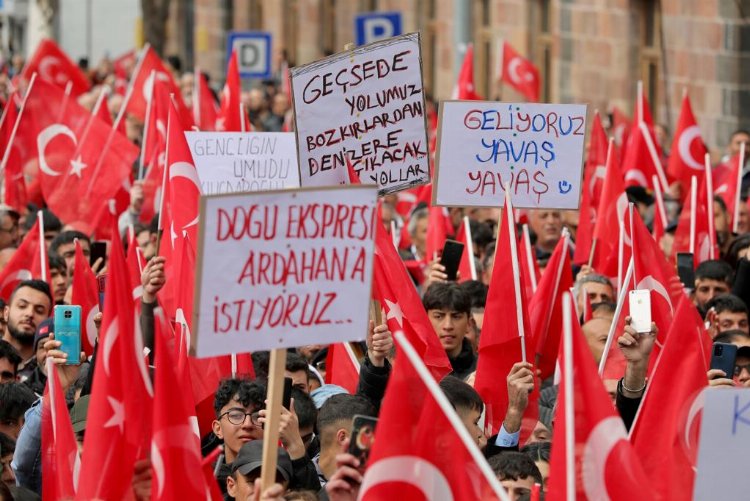 Yağmura rağmen Kongre Caddesi’ni dolduran Ardahanlılar, 3 lidere sevgi gösterilerinde bulundu.