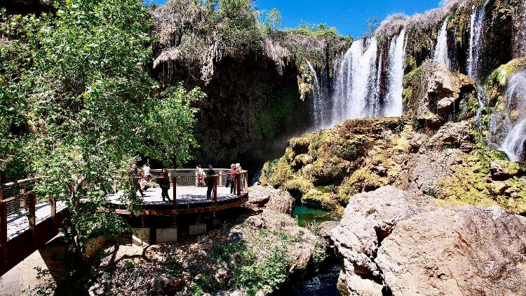 Konya Büyükşehir Belediye Başkanı Uğur İbrahim Altay, Büyükşehir Belediyesinin Hadim Yerköprü Şelalesi’nde tamamladığı 3. Etap Çevre Düzenleme Çalışmalarının açılışını yaptı.