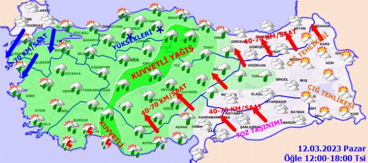 Meteoroloji, kuvvetli yağış, lodos, fırtına , kuvvetli rüzgar ve çığ beklenen bölgelerde dikkatli olunması uyarısında bulundu.