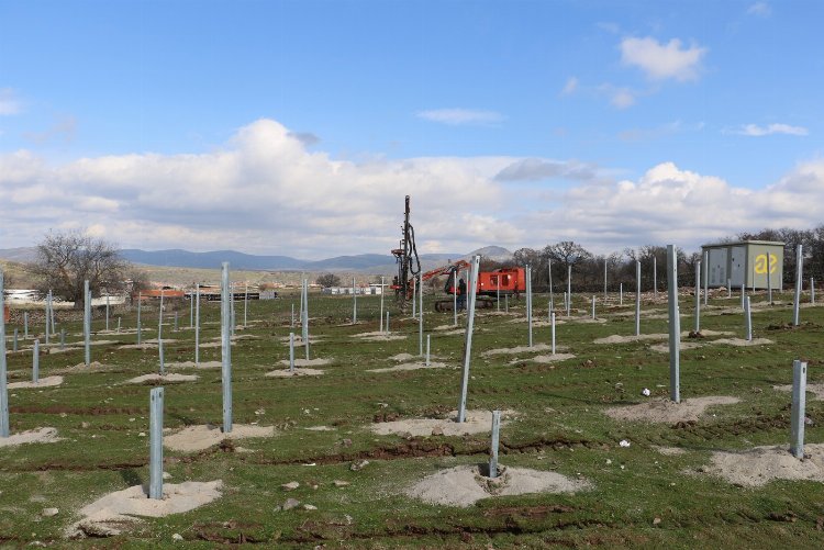 MASKİ Genel Müdürlüğü, çevreci yatırımları kapsamında Yunusemre ilçesi Seyitli Mahallesinde inşa çalışmalarına başladığı 5 megavatlık güneş enerji santralinde panellerin takılacağı ayakların montajına devam ediyor.