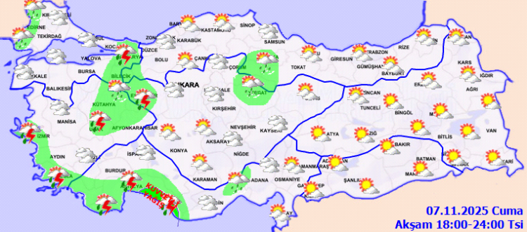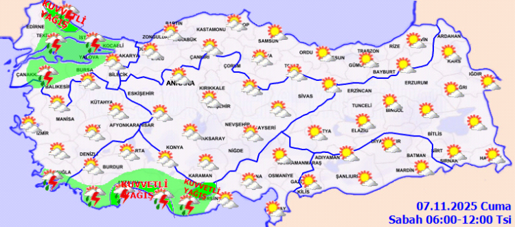 ANKARA (İGFA) - Meteoroloji Genel Müdürlüğü, 7 Kasım 2025 tarihli günlük tahmin raporunda ülke genelinde parçalı ve çok bulutlu bir hava beklediğini duyurdu.