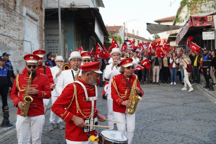 Bando Buffo ekibi ile birlikte kortej yürüyüşü gerçekleştiren vatandaşlar, ellerinde bayraklarla Milas sokaklarında renkli görüntüler oluşturdu ve bandonun coşkulu temposuna eşlik etti.