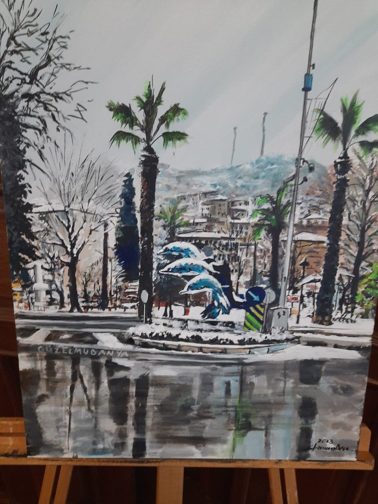 Resim öğretmeni Harun Arı'nın önderliğinde 40 eserin yer aldığı sergiyi ziyaret eden Mudanya Belediye Başkanı Hayri Türkyılmaz ve TYSD Mudanya Şube Başkanı Nuray Uzer, 21 Mart'a kadar açık olan sergide birbirinden güzel eserleri ortaya çıkaran sanatçıları tebrik etti.