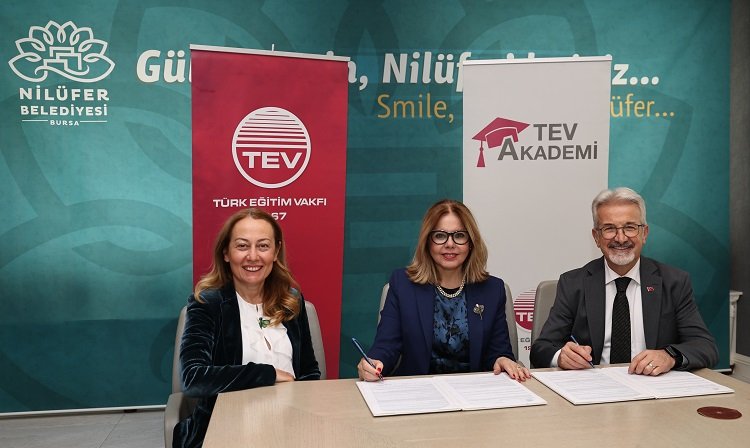 Nilüfer Belediye Başkanı Turgay Erdem, TEV Genel Müdürü Banu Taşkın ve TEV Yönetim Kurulu Üyesi A. Fatma Dilek Mutuş’un imzaladığı protokol, Nilüfer Belediyesi Halkevi’nde gerçekleşti.