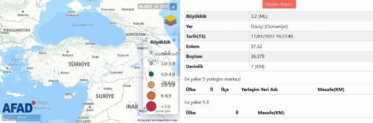 Osmaniye'nin Düziçi ilçesinde 3.2 büyüklüğünde bir deprem meydana geldi.